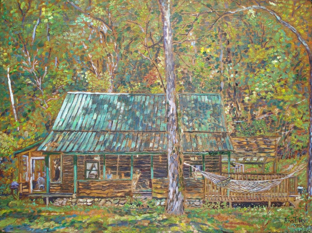 My first ex-wife Lillian, my Dutchess or “Dutchie”, and I were still thawing out from our post-college year in Menomonee Falls, Wisconsin, teaching junior high and high school kids more than they really wanted to know. We’d moved back down South just for the summer, or so we thought. Living in a tent on the farm where three creeks met and sometimes in what was to become my shacky home alone.