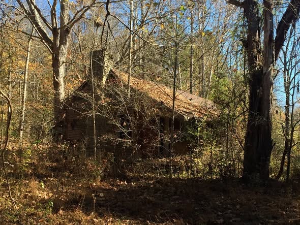 This photo is of Miz Kelley’s house, in the shadows of late afternoon. Overgrown with honeysuckle, a yard strewn with uprooted trees, (though for what reason I know not), the main cabin house stood level, with a ramrod roofline to prove it, until the farm’s new owners bulldozed it after I left. (So sorry they did that.)
