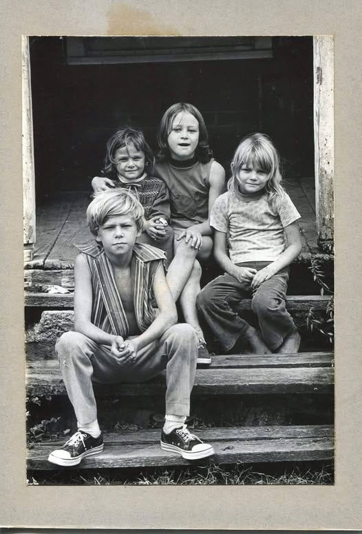 Four Kelley kids in a feather bed, hearing empty rocking chairs creak and moan